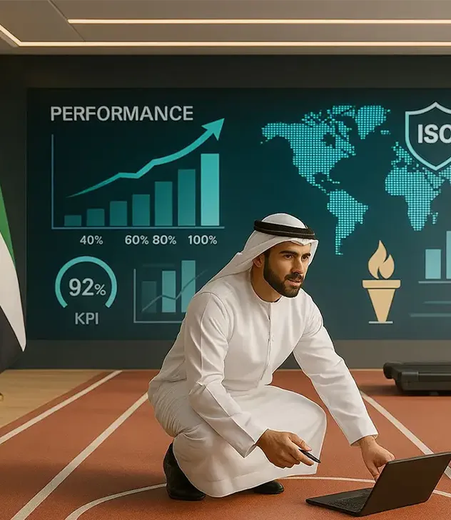 هي شركة رائدة ومتخصصة في تقديم حلول واستشارات مبتكرة في مجال الرياضة. نهدف إلى تمكين الأفراد والمؤسسات من تحقيق أعلى مستويات الأداء الرياضي من خلال تطوير الكفاءات وتنفيذ البرامج التدريبية المتقدمة. نلتزم بتوفير خدمات متميزة تلبي احتياجات الشركات والمؤسسات العاملة في الدولة، مع التركيز على الجودة، الابتكار، والاستدامة. كما نسعى أن نكون الشريك الاستراتيجي الأول في تطوير القطاع الرياضي وتحقيق التميز على المستوى المحلي والدولي.